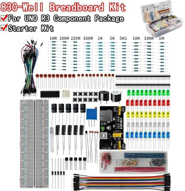 Electronic Components Kit Pack Starter DIY Project For R3 Common Capacitors Resistors Capacitors 830-well Breadboard