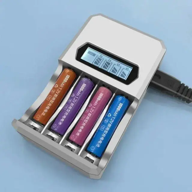 4 Bay AA 3AUSB Input Fast Charging Independent Slots LCD Display for NiMH NiCD Rechargeable Batteries
