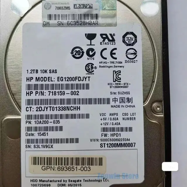 718291-001 1.2T 10K SAS 2.5 718160-B21 SSD Hard Drive For G7 Disk with Caddy