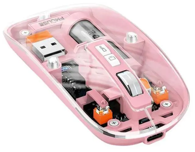 ATP-Wireless Mouse Bluetooth 5.1 2.4G Tri Mode Gaming Mouse Ergonomic Mute Transparent Mouse for PC Laptop Cell Phone C