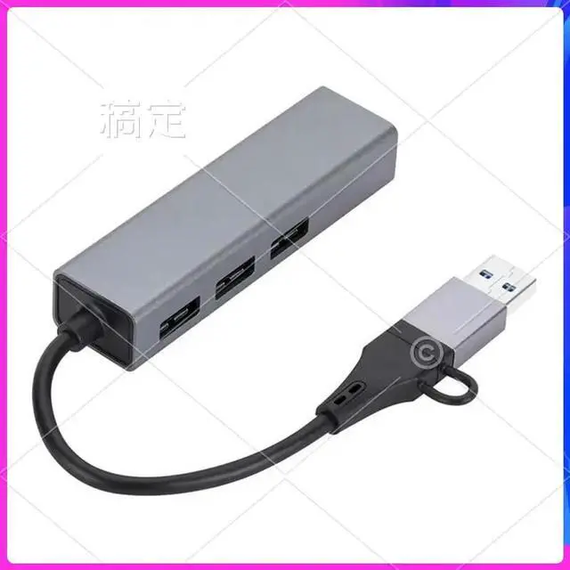 AP-1 Piece Gigabit Network Card 1000Mbps 3 Port 3.0 HUB 2 In 1 Cable USB-C To RJ45 Driverless Network Card Aluminum
