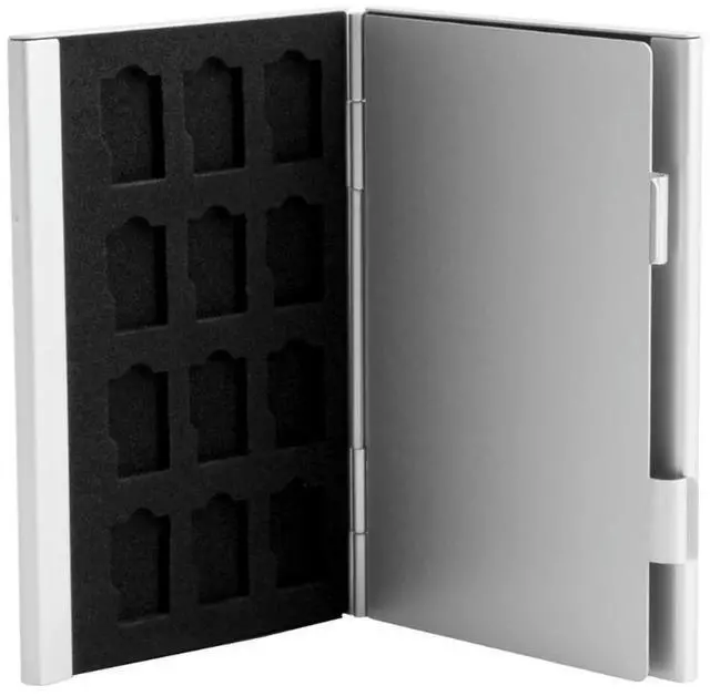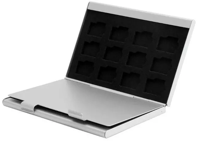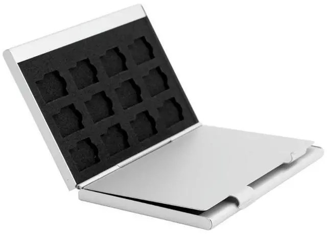 Silver Aluminum Memory Card Storage Case Box Holder For 24 TF Micro SD Cards