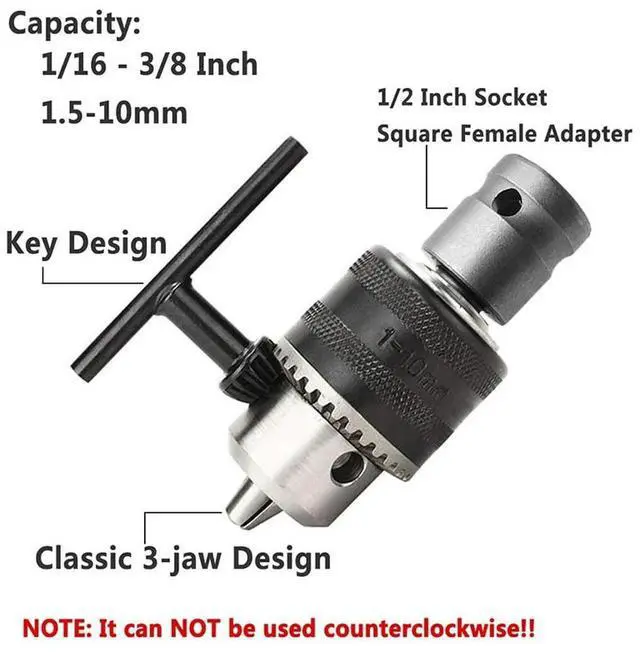 1.5 -10mm 1/16 Inch - 3/8 Inch Capacity Key Drill Chuck Wrench Converter 1/2 Inch Socket Square Female Adapter