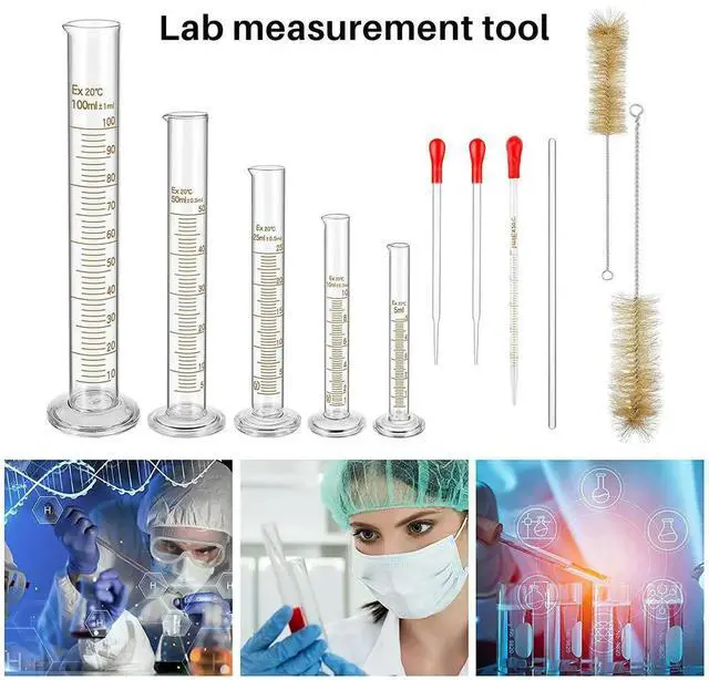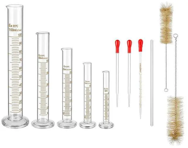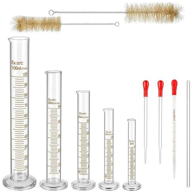 Glass Graduated Measuring Cylinders Set, Premium Borosilicate Cylinders Kit with 3 Pipettes+2 Brushes+1 Stirring Rod