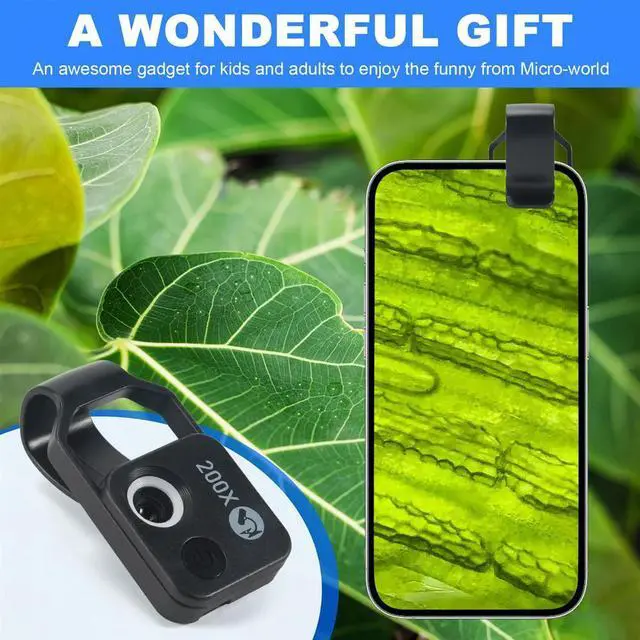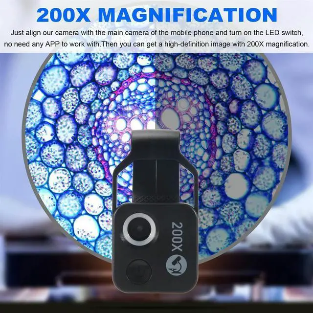 200X Cell Phone Microscope Accessory with Window Microscope, Portable Mini Digital Microscope with LED Light/Universal Clip