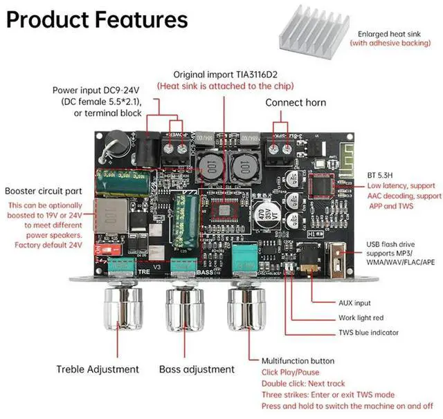 ZK-1001U DC 9-24V Audio Power Amplifier Module BT 100W Mono Board AMP Module For Home Theater TPA3116D2