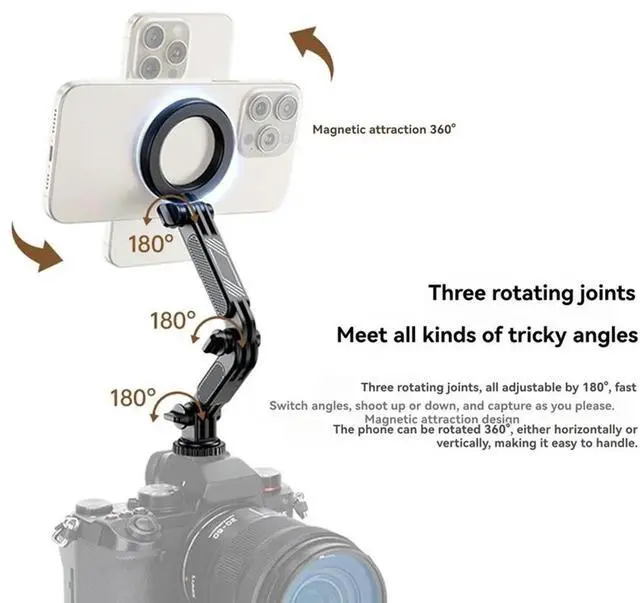 Magnetic Phone Tripod Mount Adapter For Gopro Hero 13 12 Including 1/4" Screw Cold Shoe Mount For 16 15 Act