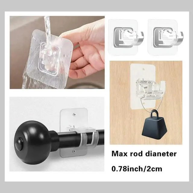 78PCS Curtain Rods No Drill Curtain Rod Brackets Hooks Nail Free Adjustable Stick On Curtain Rod Transparent Hook