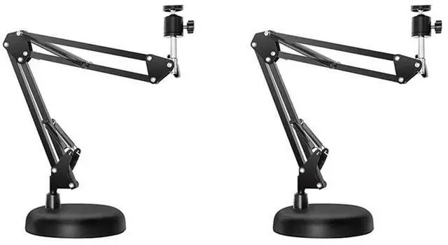 2X Webcam Stand For Desktop Suspension Boom Scissor Arm Stand With Upgraded Round Base, For Webcam