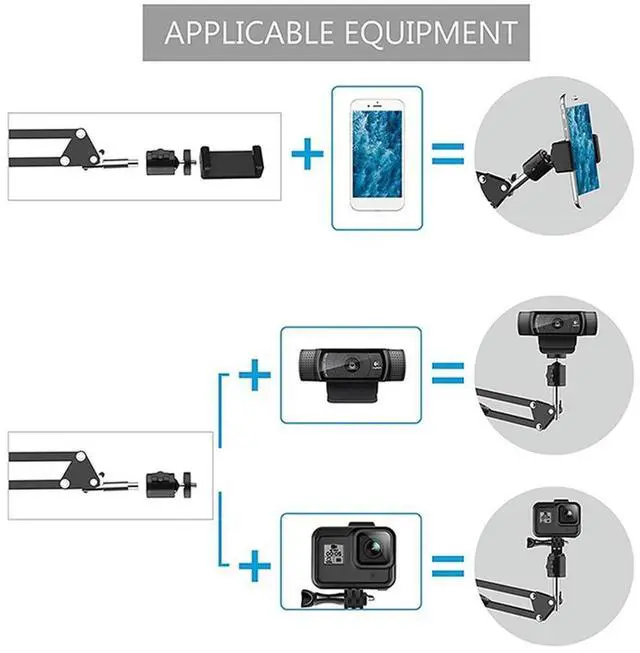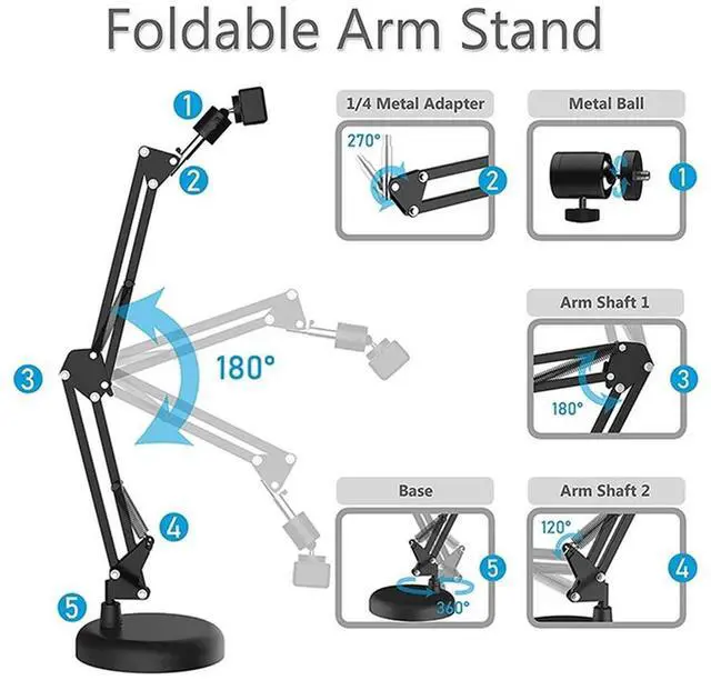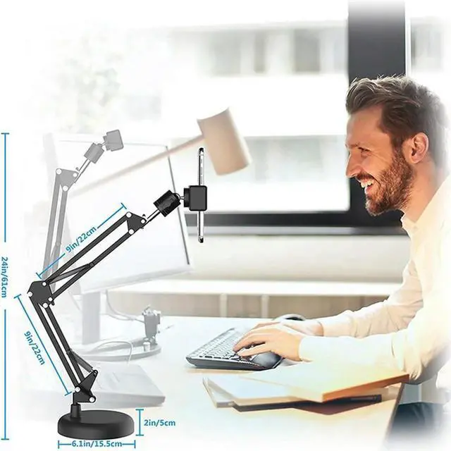 2X Webcam Stand For Desktop Suspension Boom Scissor Arm Stand With Upgraded Round Base,For Webcam