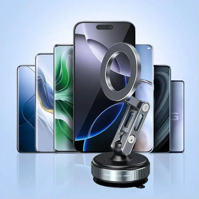 Magnetic Car Phone Mount Foldable Vacuum Suction Cup Cell Phone Holder 360 Rotation Phone Bracket for 16/15/14/13/12