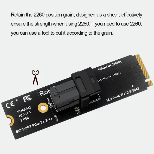 M. 2 NVME To U. 2 Expansion Card Mkey PCIeX4 To SFF8643 Converter Card 64GT/S High Speed Stable Transmission for Desktop Computer