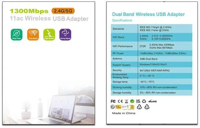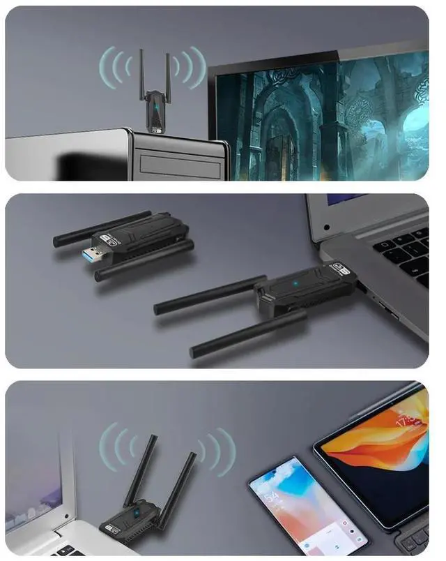 AC1300Mbps USB NetworkCard High Gain Antenna Dual Band 2.4 /5Ghz Wlan Transmitter Receiver for Desktop XP/Vista/11/10