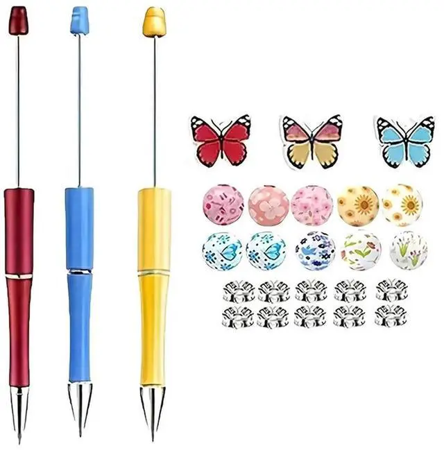 Beadable Pens Bulk With Colorful Silicone Beads For DIY Pen Making Kit For Women Kids Students Office School
