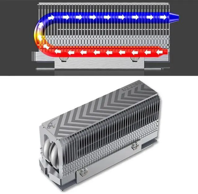M. 2 2280 SSD Heatsink Heat Sink Radiator 2xAGHeat Pipe Solid State Drive Radiator with Silicone Pad