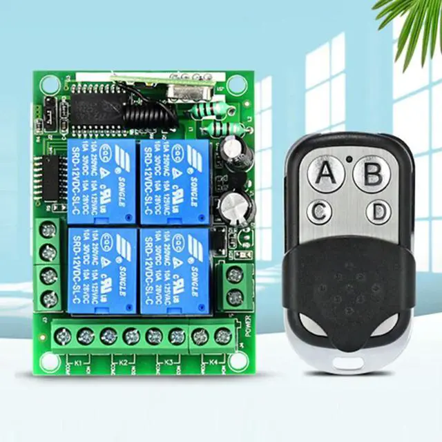 433MHz Wireless RF Remote Control Relay Switch DC12V 4CH Relay Receiver Module Relay Remote Control for Gate Garage Door Light