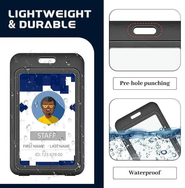 ID Badge Holder With Double-Sided Vertical ID Card Holder ID Card Case Protector For Office, 12PCS Black