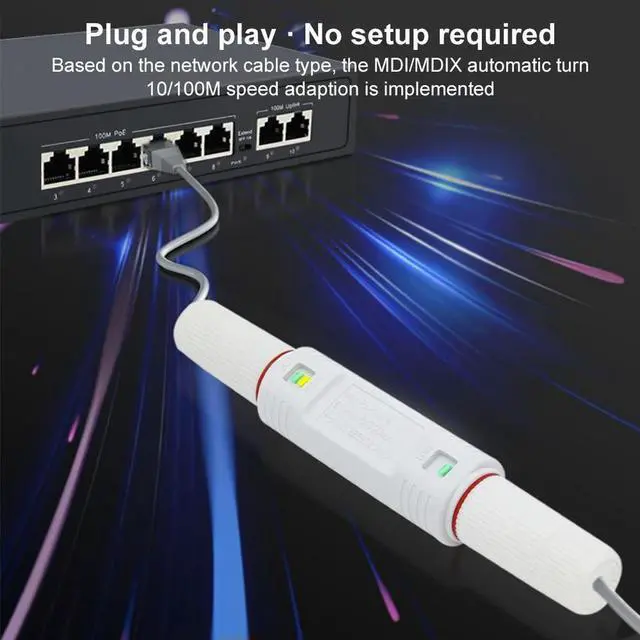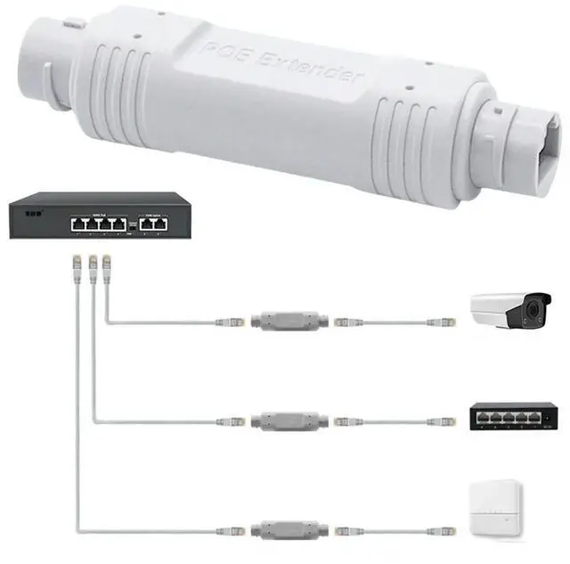 48V PoE Extender Comply with IEEE 802.3af/ 802.3at Waterproof PoE Repeater Plug and Play 10/100Mbps for PoE Switch NVR IP Camera