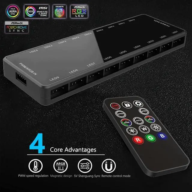 1 To 9 3 in 1 Hub Remote Control 5V 3 Pin Argb Cooling Fan Multi Hub Splitter Safety Parts 4 Pin Pwm Docking Station for pc Case