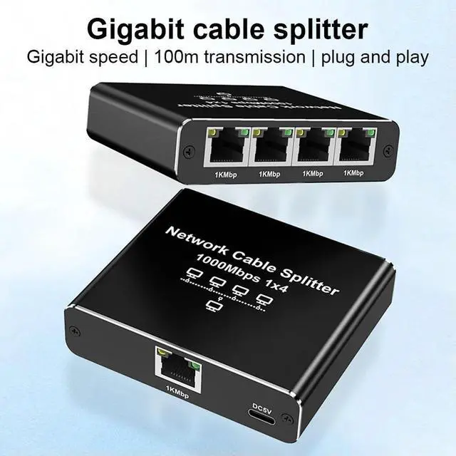 1 To 4 LAN Splitter with USB Power Cable 1000Mbps RJ45 Splitter 4 Devices Simultaneously Networking for Cat5/5e/6/7/8 Cable