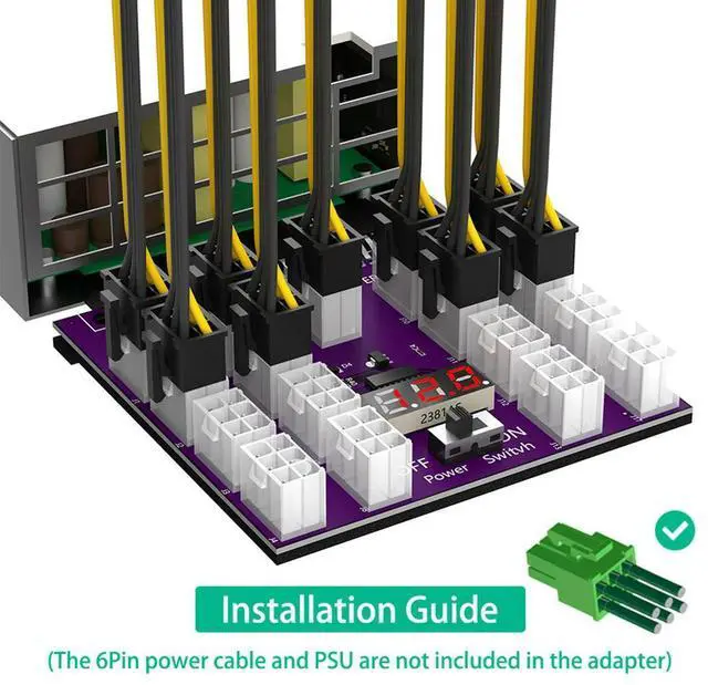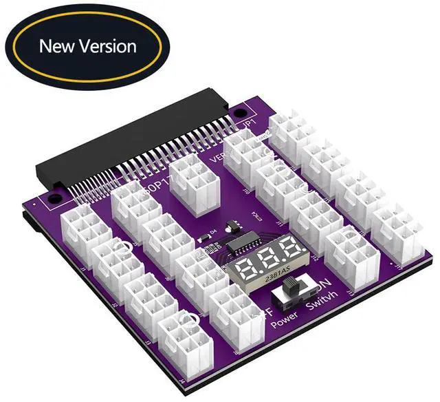 17 Ports PCI-E ATX 6Pin LED Display Power Module Server Card Adapter Power Supply Server Adapter for GPU Miner Mining BTC ETH