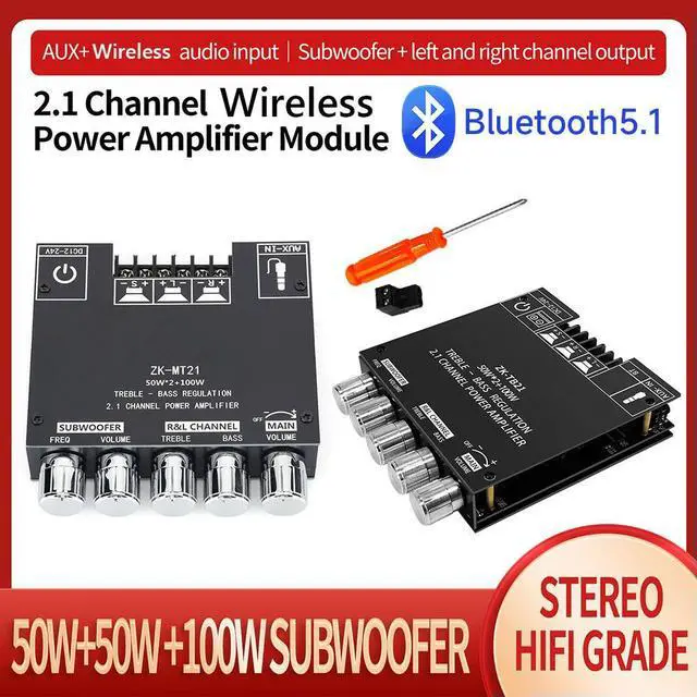 ZK-MT21 2x50W+100W 2.1 Channel BT5.0 AUX Power Subwoofer Amplifier Board