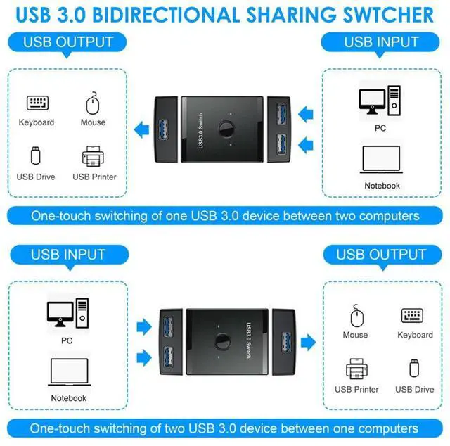 1 in 2 Out USB Sharing Switch with 2pcs Cables 2 Port USB Peripheral Switcher Hub Box Plug and Play for Printer/Other Usb Device