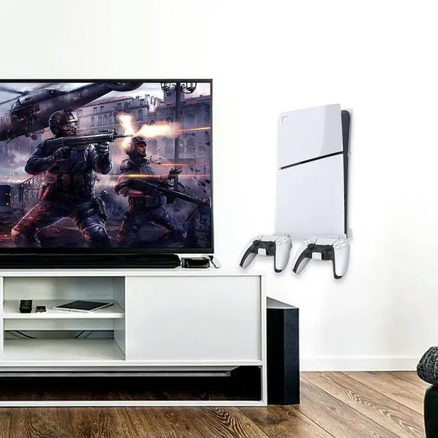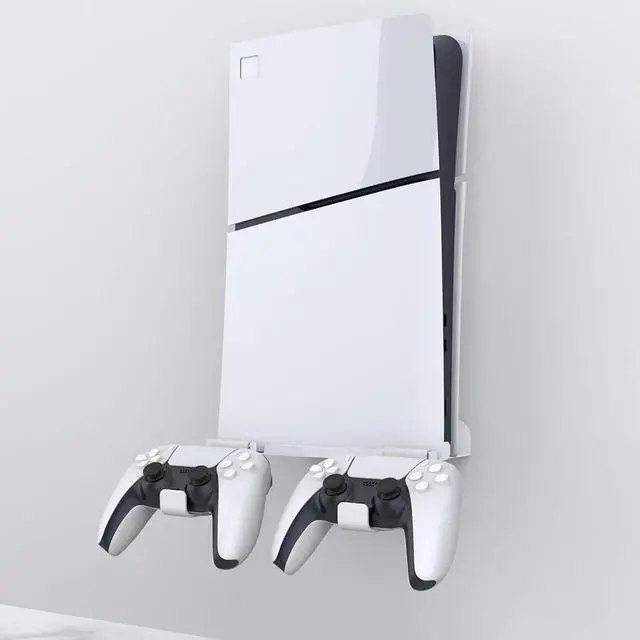 Wall Mount Bracket Game Console Base Stand Holder with 2 Controller Mounts Vertical Stand Wall Hanging Stand for PS5 Slim