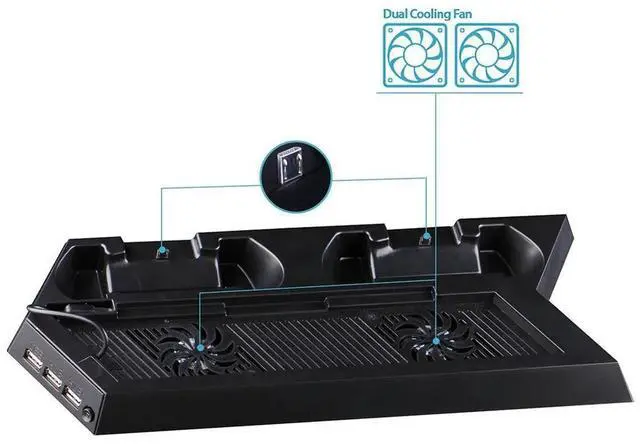 For PS4 Vertical Cooling Station Fast Controller Charger Cooling Fan & Charging Stand for 4 Console and Controller