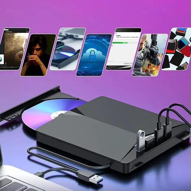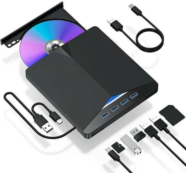 7-in-1 USB 3.0 TypeC External Mobile Drive CD DVD Burner High-Speed Plug-and-Play for 11/10/8/7/Linux/ OS
