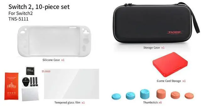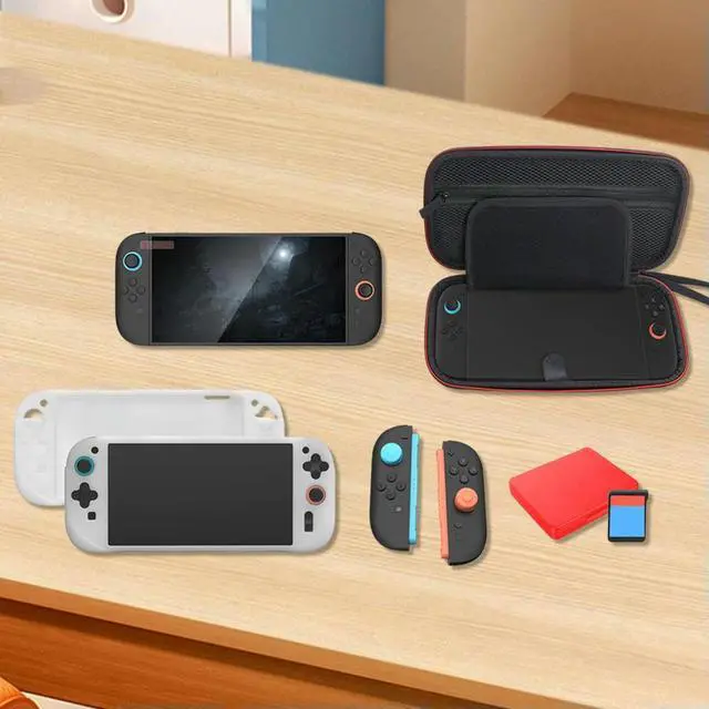 for Nintendo for Switch 2 Case with Tempered Glass Screen Protector PU Travel Pouch with Silicone Case & Thumb Grip Caps