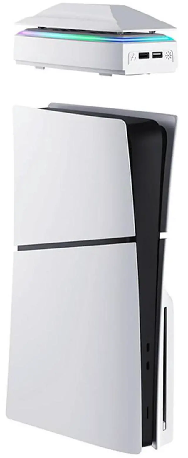 Console Cooling Fan with Dust Cover Colorful LED Light 2 USB Port Cooling Fan 3 Speed Upper RGB Cooling Fan for PS5 Slim Console