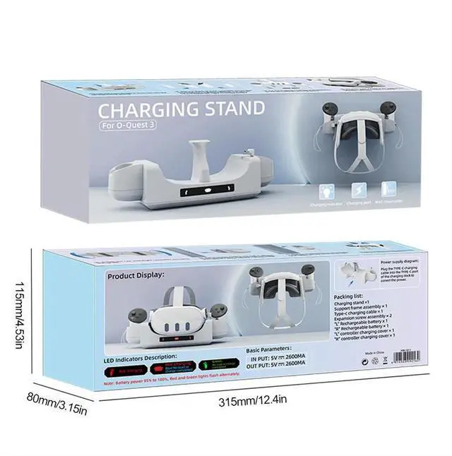 VR Charger Station Charge Controllers Headset Simultaneously Charging Station Accessories With Indicator Light for Quest 3