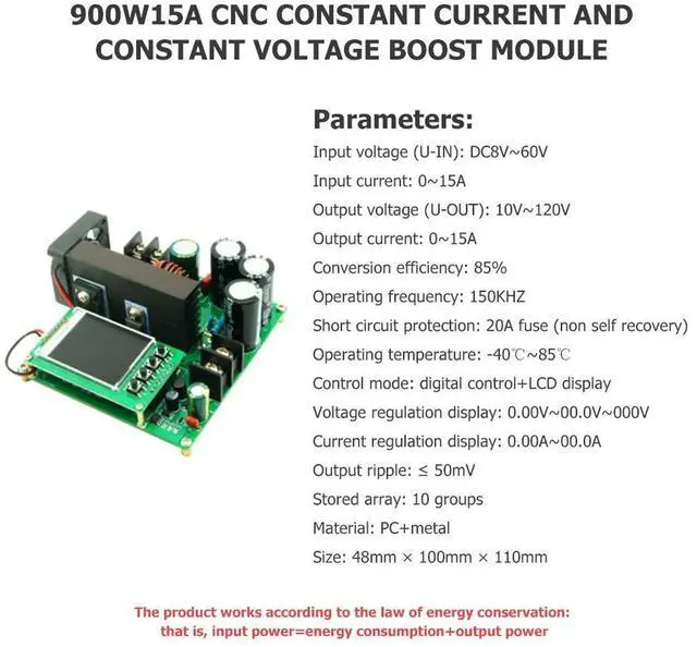 900W 15A Boost Module Board TFT Display DC-DC Boost Converter Module 8-60V To 10-120V Constant Current Voltage CC CV