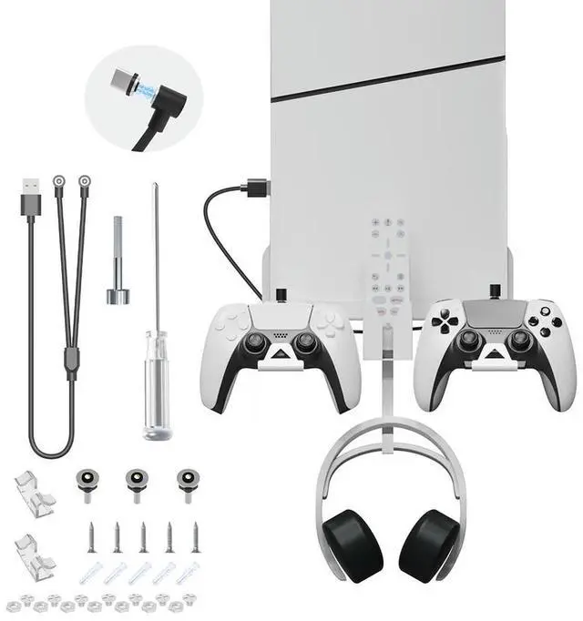 Wall Mount Bracket Stand Space Saving Stand Holder Hook Stable l for PS5 Slim Game Console/Headset/Controller