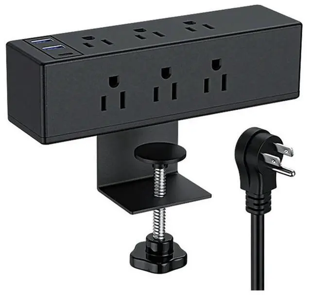 Desk Clamp Power Strip with USB Widely Spaced Desk Outlet Station 8/6 AC Outlet and 6.6 ft Power Cord Fit 1.6 in Tabletop Edge