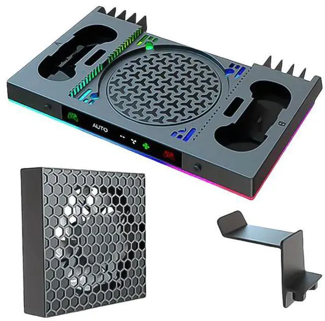 RGB Charging Dock with 3-Levels Fan Cooling Fan Base with Game Discs Card Slot Game Controller Handle Charger for Xbox Series X