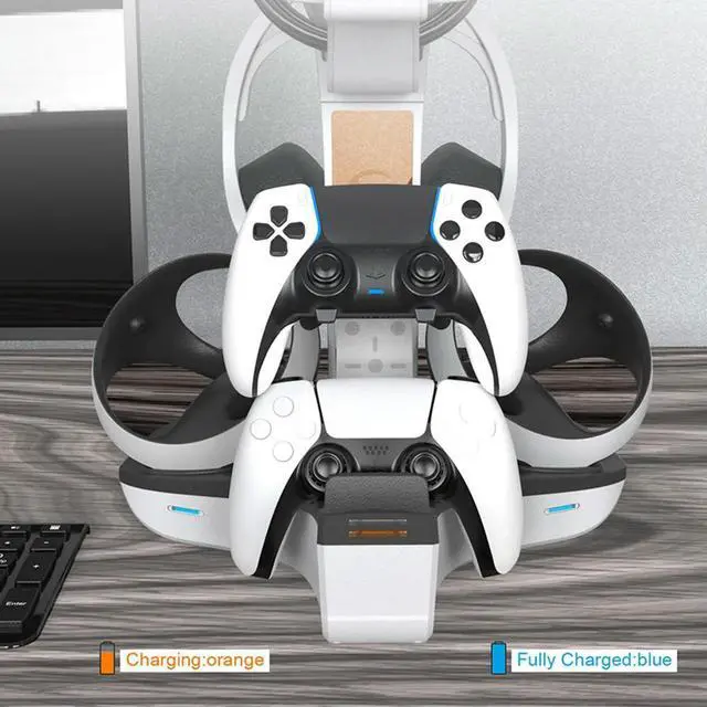 Game Controller Charger Station LED Indicator Light Controller Charging Cradle Helmet Earphones Bracket for PS5 PS VR2