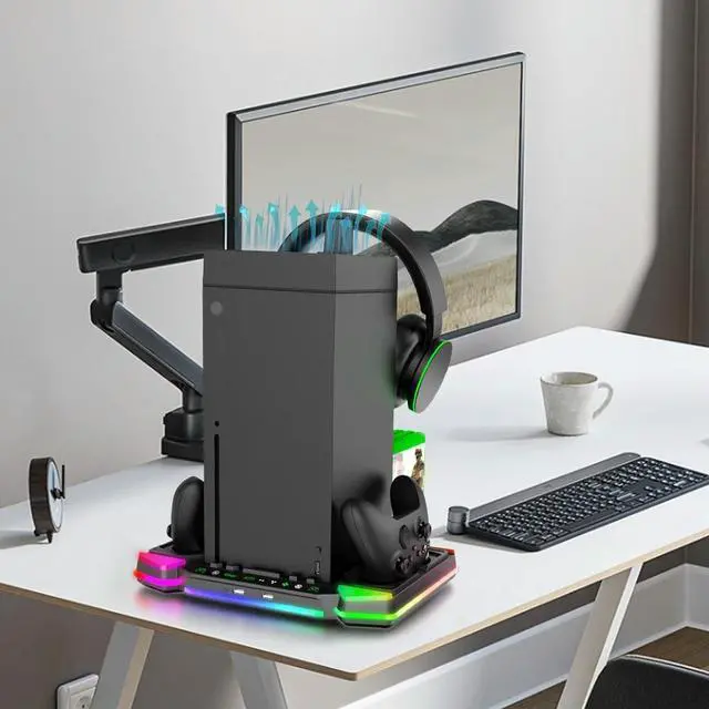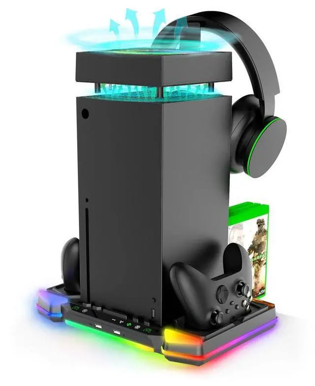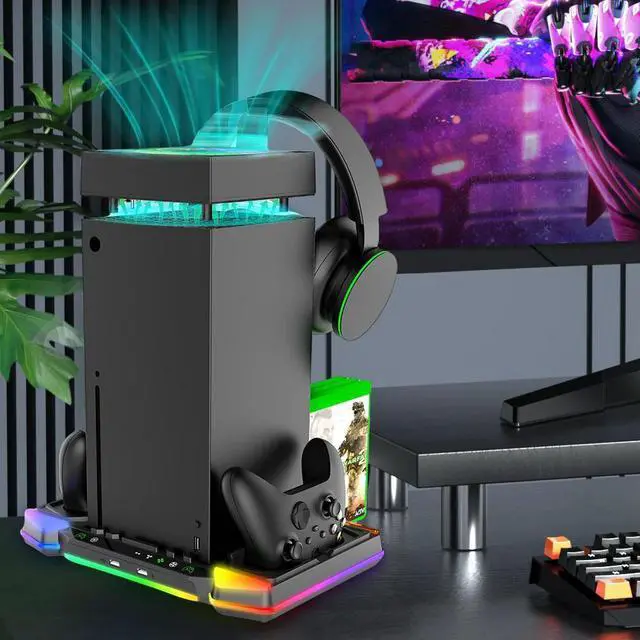 For Xbox Series X RGB Charging Dock Cooling Fan Base W/ Game Discs Card Slot Gamepad Charge Seat for Xbox Series X Accessories