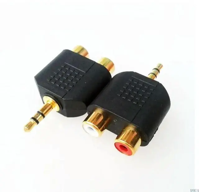 3.5 mm Male To Female 2RCA Gold-plated Connector Computer and Two 3.5 Plug Lotus Female Adapter