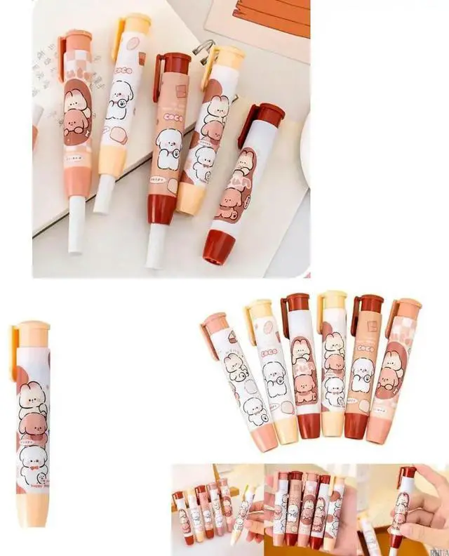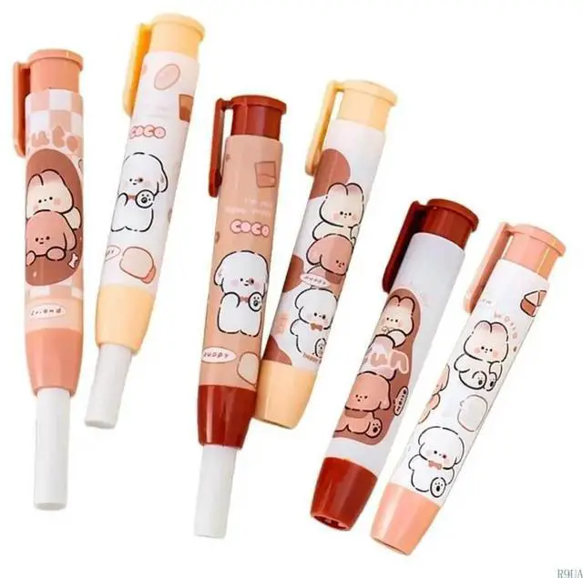 6Pcs Retractable Eraser Pencil Erasers Cartoon Rubber Erasers for Student Boy Girl Class Reward Christmas Favor