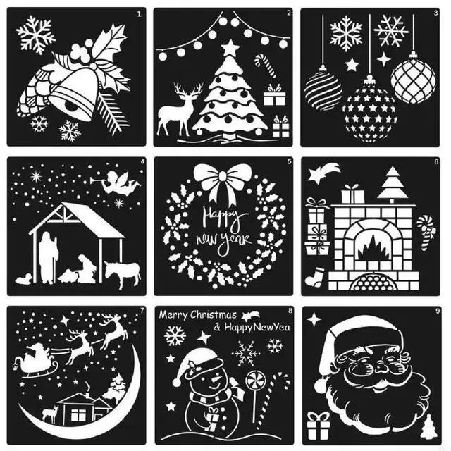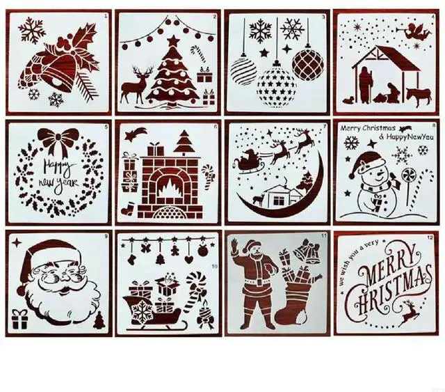 12 Pcs Painting Stencils DIY Christmas Decoration Drawing Stencil for Painting