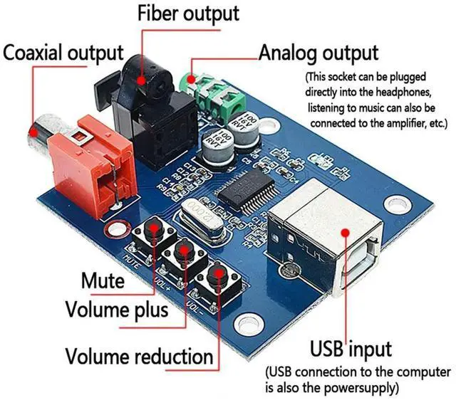 USB DAC Power Fiber Optic Coaxial Analog Output, For Raspberry Pi Raspbian Raspbmc For 7, Built-In PCM2704