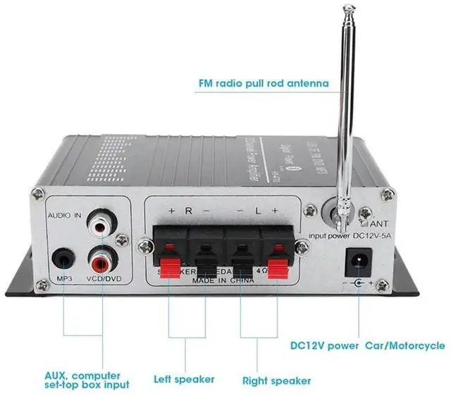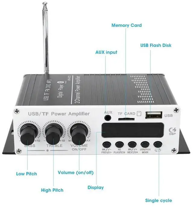 USB Digital Stereo Power Audio Amplifier Bluetooth FM 3 In 1 Memory Card Support