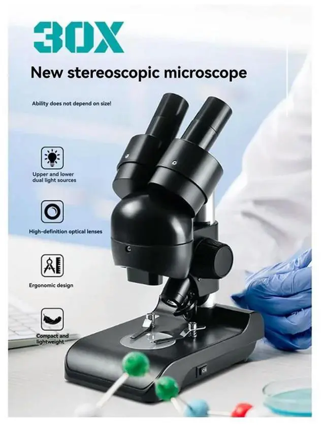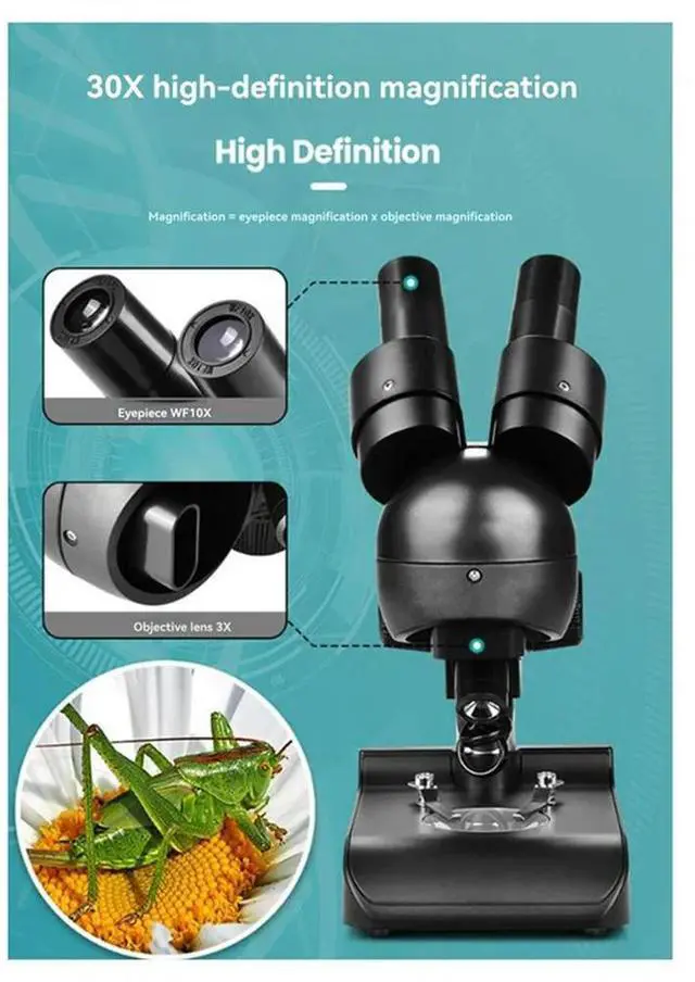 ES1057 Binocular Microscope Kit 30X Magnification Biological Microscope Scientific Experiment Anatomy