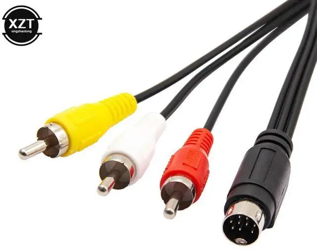 1.8M 3RCA to 9 pin Nickel Plated Plug Game Cable for Sega Genesis 2 3 II III Connection Cord AV RCA Audio Video Cable