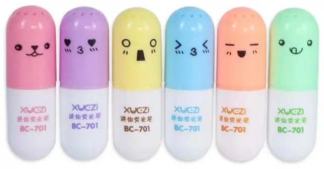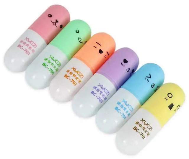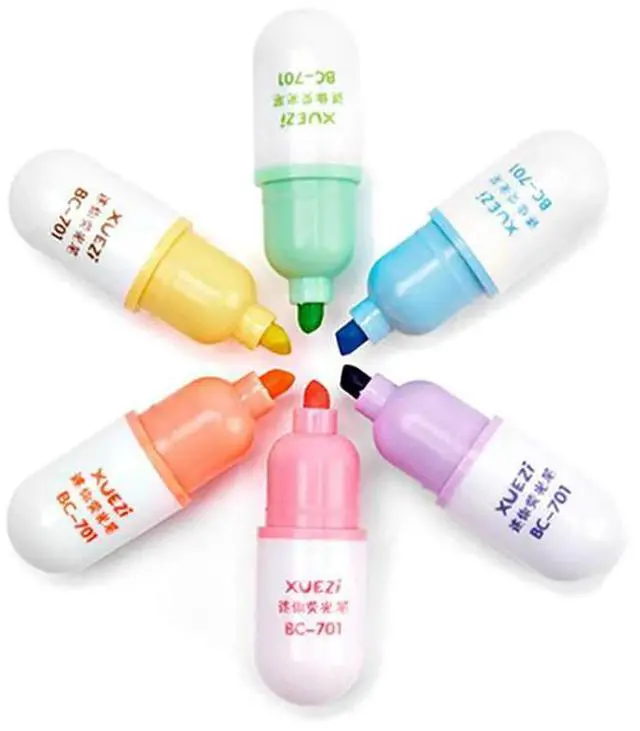 6 Pcs/Set Capsules Highlighter Vitamin Pill Shaped Mini Highlight Marker Color Pens Stationery Office School Supplies Child Gift
