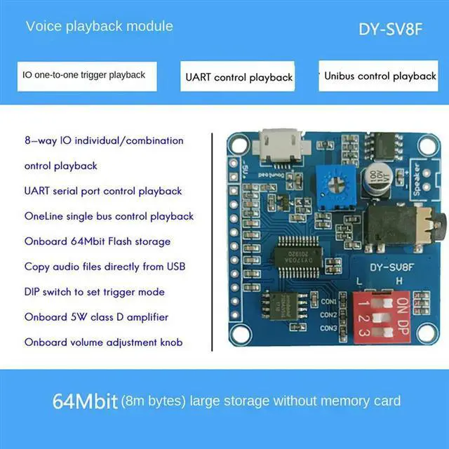 2X DY-SV8F Voice Playback Module MP3 Player UART I/O Trigger Amplifier Class D 5W 8M Flash SD/TF For