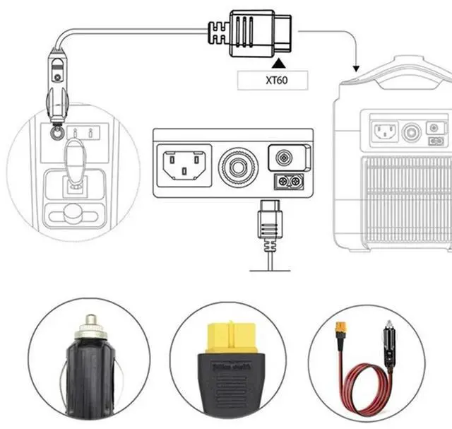 XT60 Connector Extension Cable With Lighter Plug 10FT 14AWG Car Charger And Adapter Cord To Solar Generator