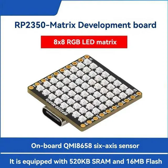 RP2350 8X8 LED Matrix Micro-Development Board Featuring QMI8658 Six-Axis Sensor Onboard